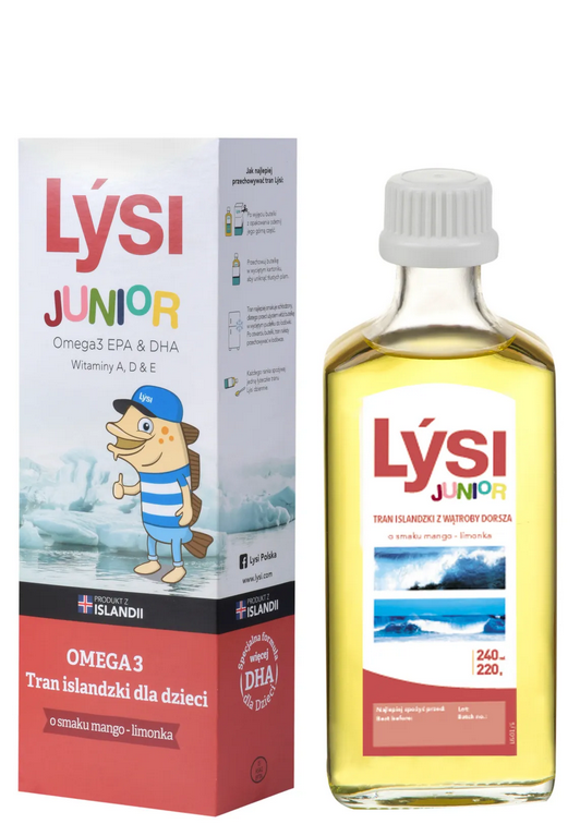 LYSI Tran islandzki dla dzieci o smaku mango-limonka 240ml