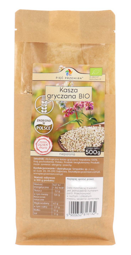 PIĘĆ PRZEMIAN Kasza gryczana niepalona BIO bezglutenowa 500g